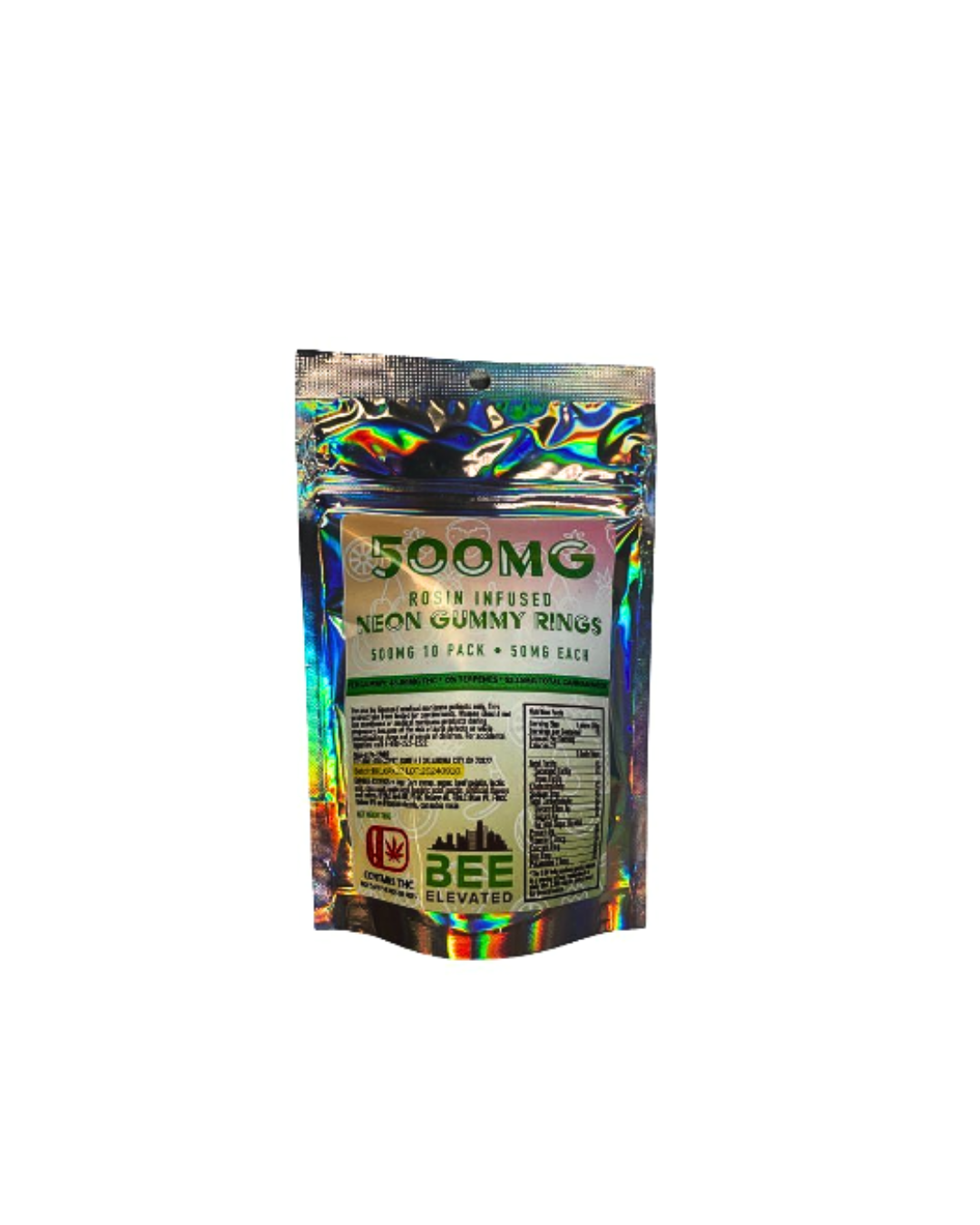 500mg Rosin-Infused Neon Gummy Rings produced by BEE Elevated. Unlike standard distillates, these gummies are infused with premium solventless rosin, preserving the full spectrum of cannabinoids and terpenes for a cleaner, more nuanced, and harder-hitting high. 2024 Cowboy Cup Edible Winner!