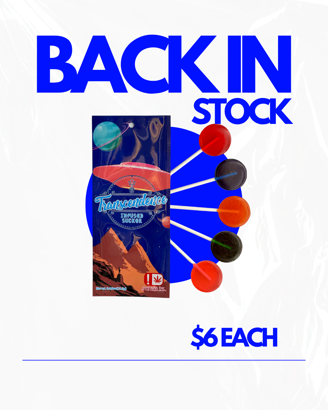 They’re back! Available in a variety of flavors, 100mg per sucker and six dollars a piece.